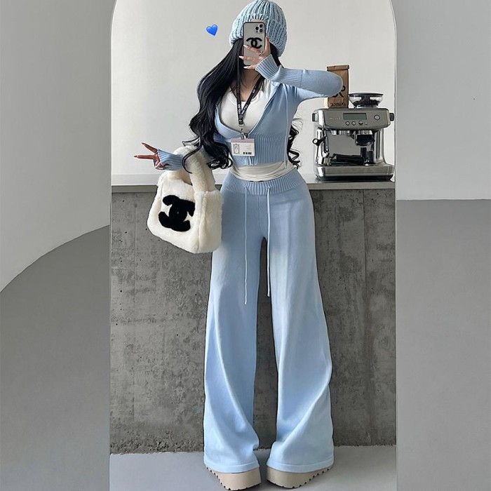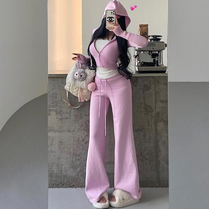 이지 웨어 세트 = 후드 지퍼 카디건 재킷 + 하이웨이스트 레그 캐주얼 팬츠 > 피트니스